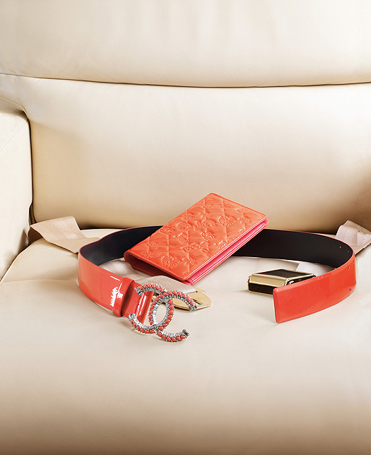 Пояс из телячьей кожи с логотипом Chanel на пряжке, украшенной стразами.