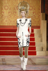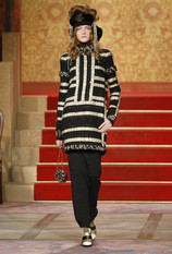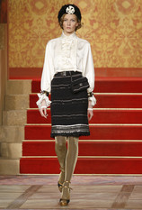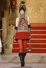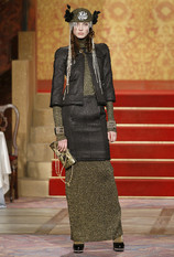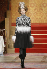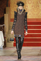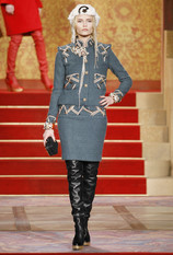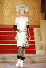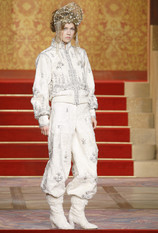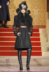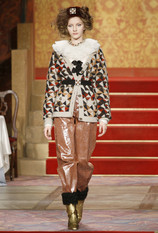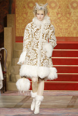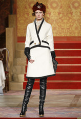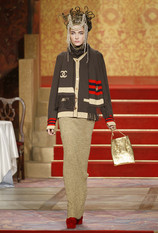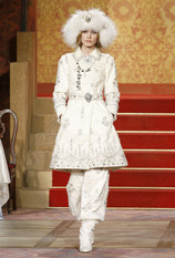 Показ коллекции женской одежды Париж—МоскваПариж-Москва от Chanel — это симбиоз французского стиля и русского богатства. Яркое своеобразие коллекции — это мех. Он везде: в отделке платьев и пальто, сумок. Шапки, конечно, тоже из меха. Основные цвета: черный, белый, красный, соединившиеся в орнаментах Москвы. Силуэты свободные. Красочная и эффектная интерпретация загадочной и роскошной русской души. фотографий: 66