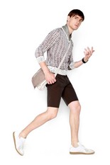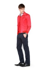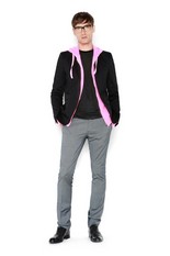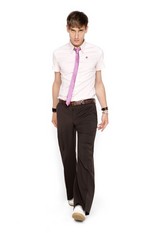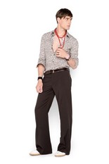 Коллекция мужской одежды весна-лето 2009Дизайнеры этой модной марки любят похулиганить: строгий чёрный пиджак они комбинируют с ядовито-зелёными трикотажными спортивными брюками или советуют одеть под пиджак розовую толстовку. Как будто короткие, едва прикрывающие запястья, рукава рубашек, а так же узкие брюки и джинсы, вернувшиеся к нам из пятидесятых, призваны создать ощущение небрежности. Но все детали, кажущиеся на первый взгляд неуместными и не сочетаемыми, вовсе не случайны. Узкие галстуки сочных оттенков, небрежно повязанный на поясе шарф или круглый значок на лацкане пиджака создают яркий неординарный образ. фотографий: 30