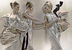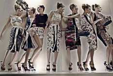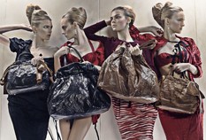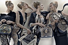 Для женской коллекции были выбраны семь моделей, пока ещё не нашумевших в модной индустрии, свежие и прекрасные: Имре Стиекема (Ymre Stiekema), Анна Ягодзинска (Anna Jagodzinska), Герда Дукавскайте (Гидре Дукаускайте), Катрин Торманн (Katrin Thormann), Найми Смит (Nime Smit), Сигрид Агрен (Sigrid Agren), и Виктория Сасонкина (Viktoriya Sasonkina). Фотограф — Стивен Мейзел (Steven Meisel). Модели, выстроившись в ряд на сером фоне, демонстрируют одежду из жатых тканей бархатно-чёрного, белого, пурпурного, бронзового и золотого цветов, а также с хищными принтами под кожу питона.