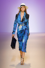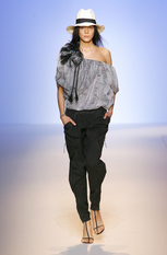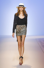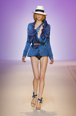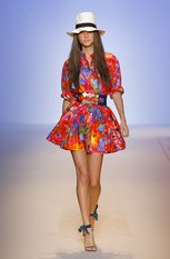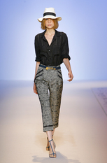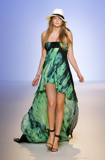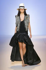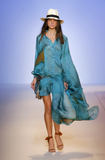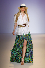 Показ женской коллекции весна-лето 2009Эстебан Кортазар (Esteban Cortazar) нашёл вдохновение для весенне-летней коллекции Эмануэль Унгаро (Emanuel Ungaro) в истории собственной семьи. Дизайнер посвятил этот показ своему отцу, пытаясь передать атмосферу того времени, когда длинноногие красотки носили цветастые платья и шляпы с мягкими полями, специально созданные для жаркого климата, например, берегов Южной Флориды. Извлечённые из архивов Унгаро, вечерние платья с множеством сборок и бретелью на одно плечо, а так же совершенно новые яркие модели короткие спереди и длинными шлейфами сзади. Помимо платьев, представлены брюки, свободные на бёдрах и сужающиеся к щиколотке, блузы простого кроя в деревенском стиле, пончо с вязаной бахромой по краю. Молодой дизайнер создал коллекцию, в которой соединил свою южную страсть с парижским шиком, традиционным для модного дома Унгаро. фотографий: 38