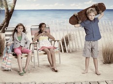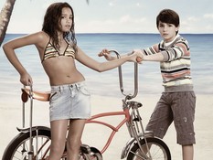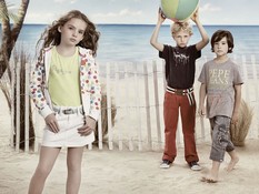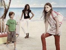 Рекламная кампания весна-лето 2009. Дети.Темой детской рекламной кампании от Пепе Джинс (Pepe Jeans) стали летние каникулы у моря. Дети вышли поиграть на пляж: девочки в цветных сарафанах, мальчики в джинсовых шортах и футболках. Яркая одежда смотрится ещё более выразительно рядом с цветными шезлонгами, надувными кругами и мячами. Золотой песок и уходящее за горизонт лазурное море — искусно созданная декорация, на самом деле, съёмка проходила в студии. фотографий: 12