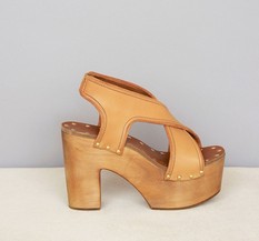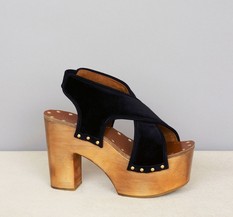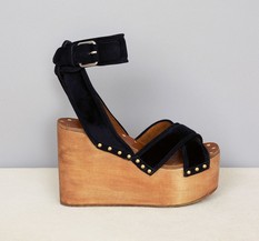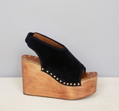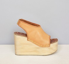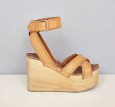Коллекция обуви лето 2010В новом сезоне Селин (Celine) представляет массивную обувь. Высокие толстые танкетки в цвет светлого дерева, толстые каблуки. Кожаный верх босоножек по краям украшен кантом, за счёт чего выглядит более грубо и внушительно. Усиливают этот эффект металлические клёпки-гвоздики и крупные застёжки. фотографий: 8