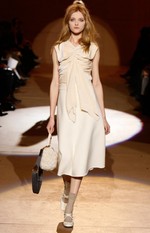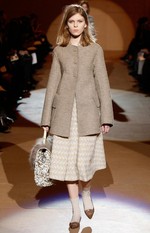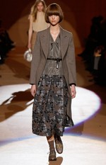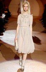 Показ женской коллекции осень-зима 2010/2011В новом сезоне Марк Джейкобс (Marc Jacobs) решил не шокировать нас революционно-новым дизайном, а сыграть на ностальгии. Коллекция производит впечатление очень милой и романтичной. «Сейчас так много борьбы за новизну, что эта новизна кажется не такой новой», — прокомментировал свой показ дизайнер. Цветовая гамма очень сдержанная и практически не выходит за рамки нейтральных серых и пастельных тонов. Платья с высокой талией и глубоким вырезом на груди, платья-футляры, пальто и жакеты всевозможных пропорций с большими воротниками, много меха, объёмные вязаные свитера. фотографий: 56
