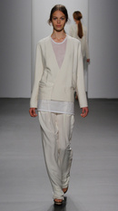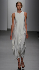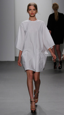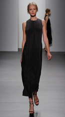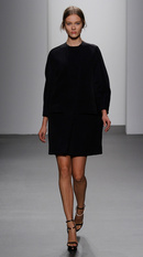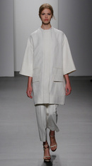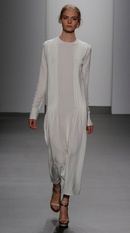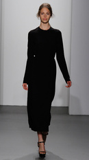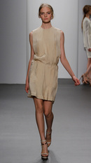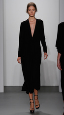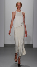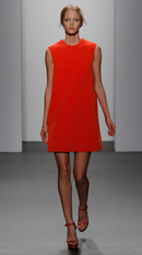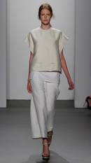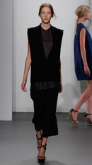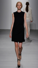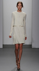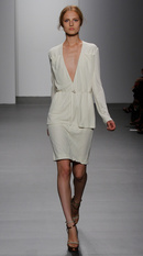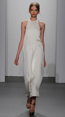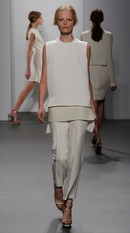 Показ женской линии Calvin Klein Collection весна-лето 2011Франческо Коста (Francisco Costa) отбросил всё лишнее, полностью сосредоточившись на гармоничных, убедительных пропорциях. Длина платьев варьируется от середины голени, до середины бедра. Вырез горловины — глубокий