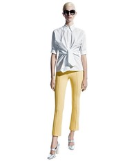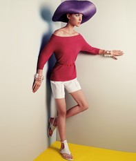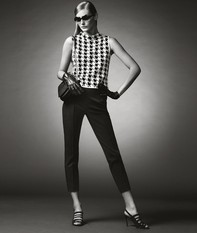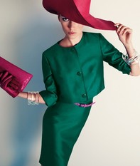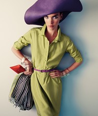 В числе самых ярких моделей коллекции: прямые платья в сочетании с большими шляпами, свободные туники с рубашечными воротниками, шорты и джемперы из тканей чистых насыщенных цветов. В более спокойных тонах: узкое платье из тонкой замши, которое облегает фигуру, как вторая кожа, чёрные и белые двубортные брючные костюмы, лёгкие летние тренчи. За счёт цвета эти модели смотрятся не так эффектно, но не скучно. фотографий: 29
