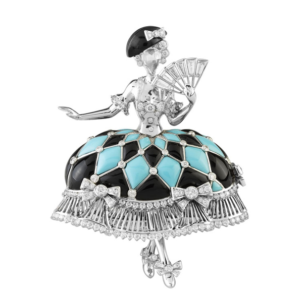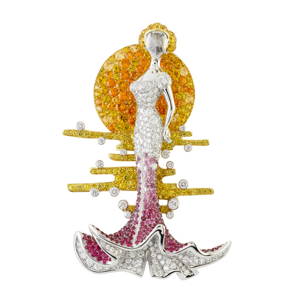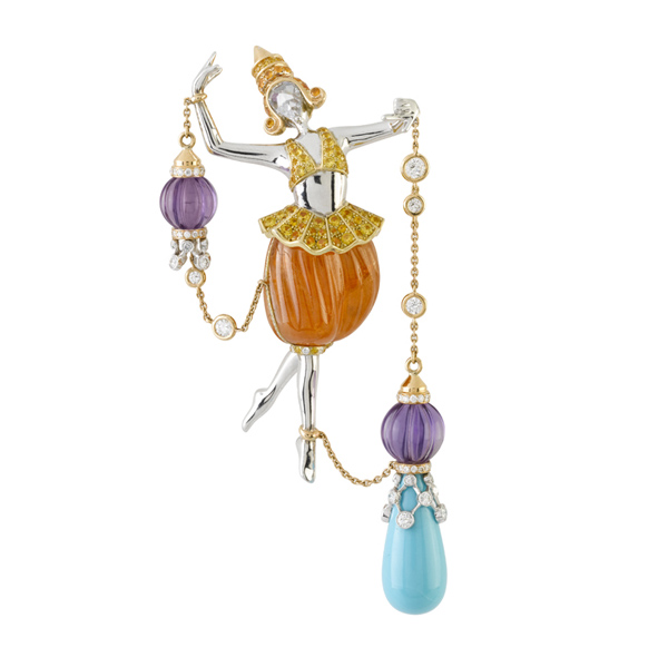 Бриллиантовая брошь Diamond Dancer — это тонкая работа в жанре миниатюрной драгоценной скульптуры, которым французская школа владеет в совершенстве. Трёхмерная фигурка выглядит очень